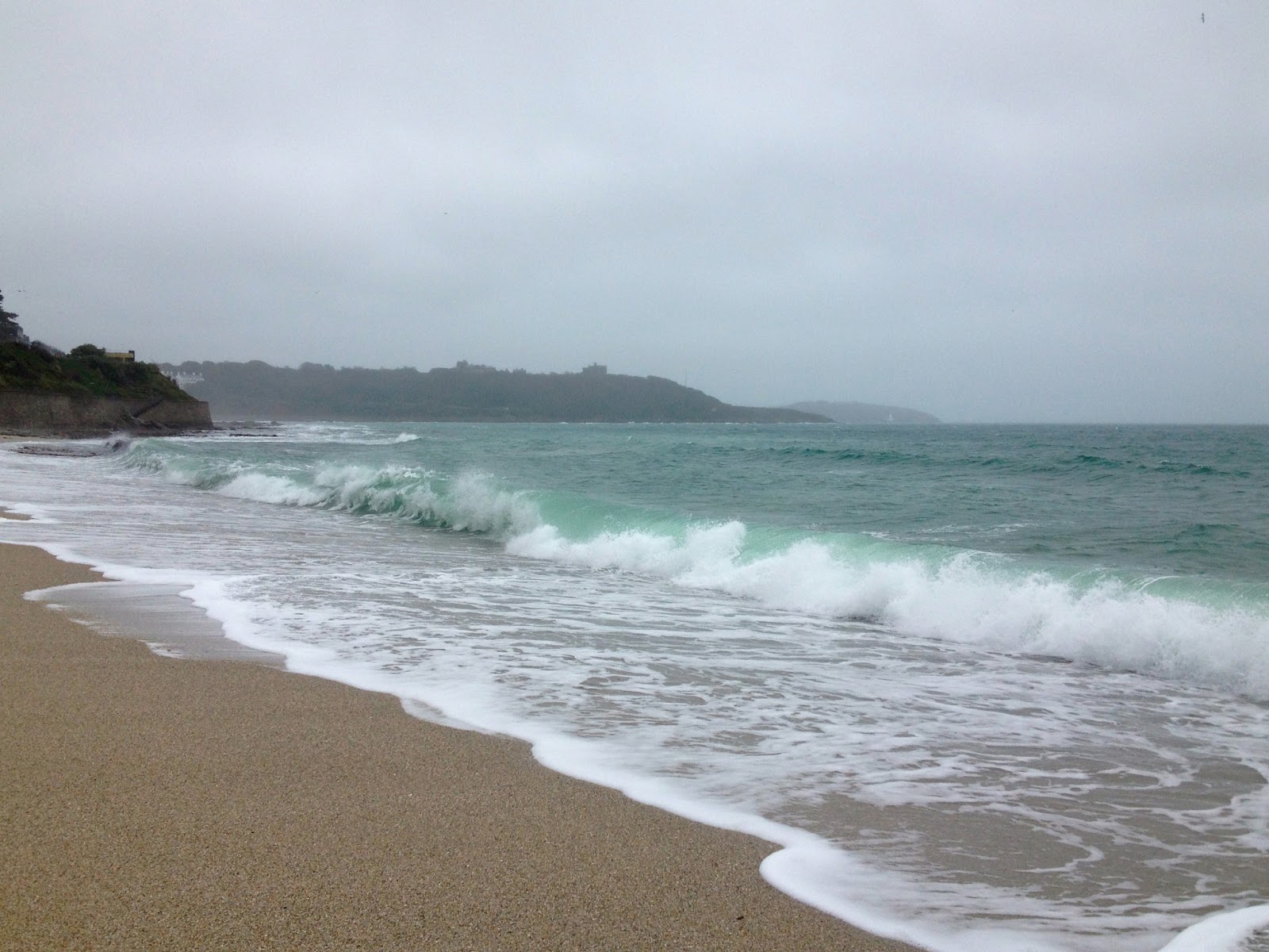 | Stormy Gyllyngvase Beach during one of several geography field trips this spring |